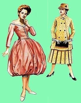 1957 г. Женское вечернее платье и дневное платье в стиле "линия А"
